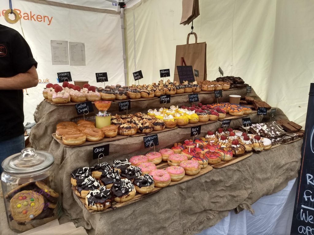 The Scots do like their sweets. There’s an ice cream store in even the smallest village. Often near the bookstores, which also abound there. Hurrah for both. We visited an outdoor market where bread shared a booth with all kinds of doughnuts. Nearby was the booth that sold tablet, a yummy fudge made with condensed milk and lots of sugar. I’ve pinned a recipe on my Pinterest page. The author warns that the tablet is “moreish.” Not a word I’d seen before, it means you’re going to want more. It is addictive. We even tried one made with the local gin. Yum. Yes, it is moreish. We bought a wee bag.